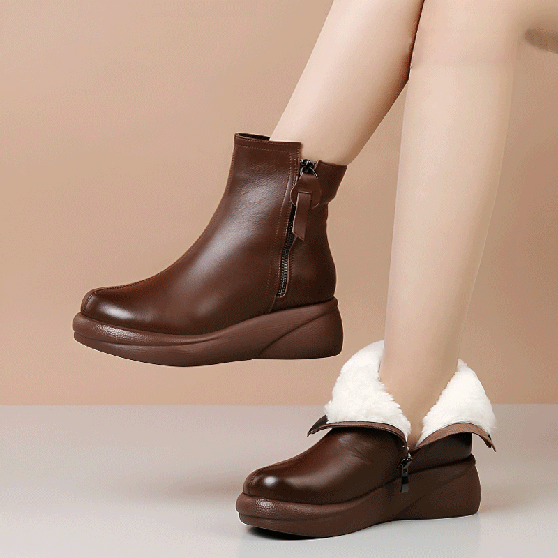 裏ボア厚底本革ショートブーツ