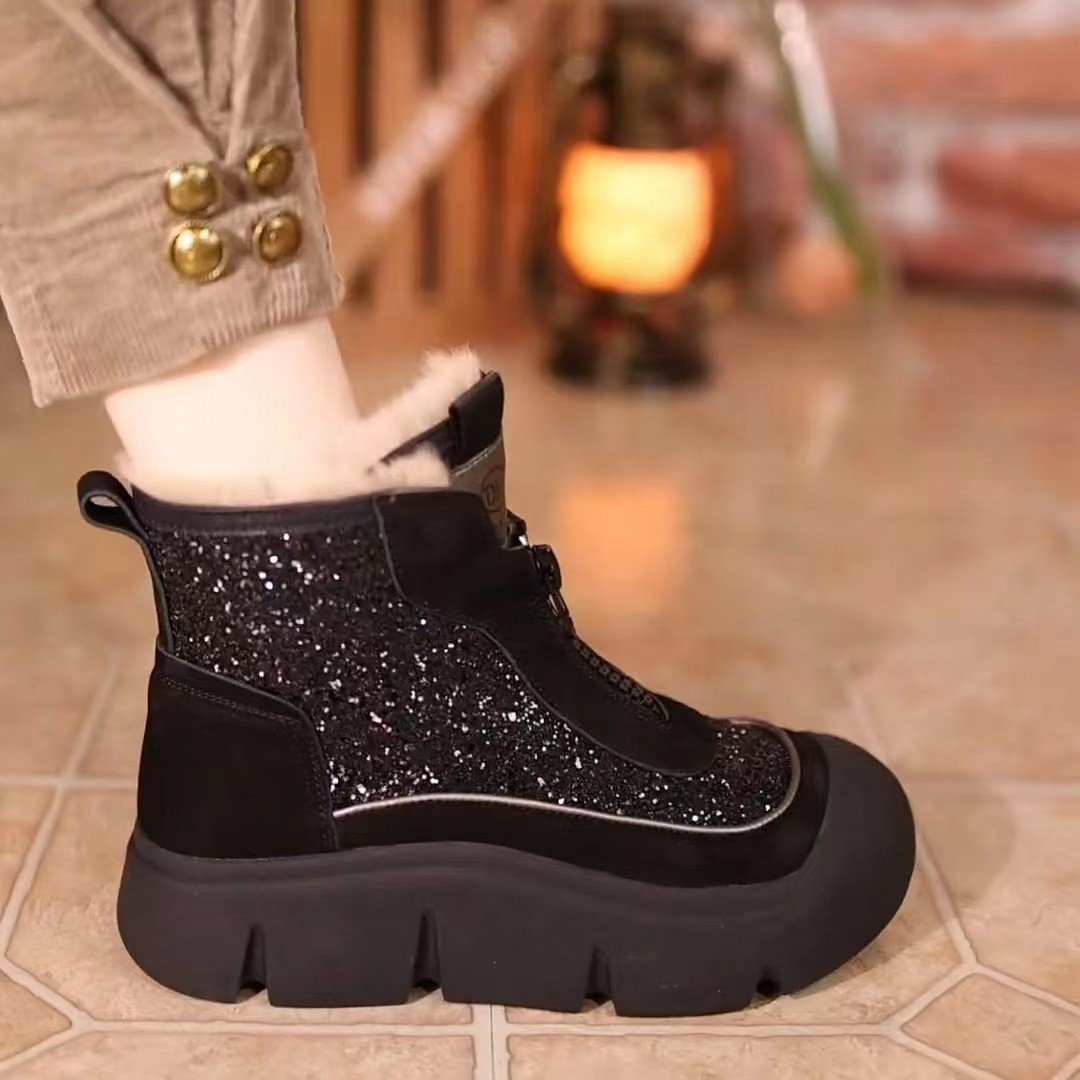 裏起毛キラキラ厚底ショートブーツ